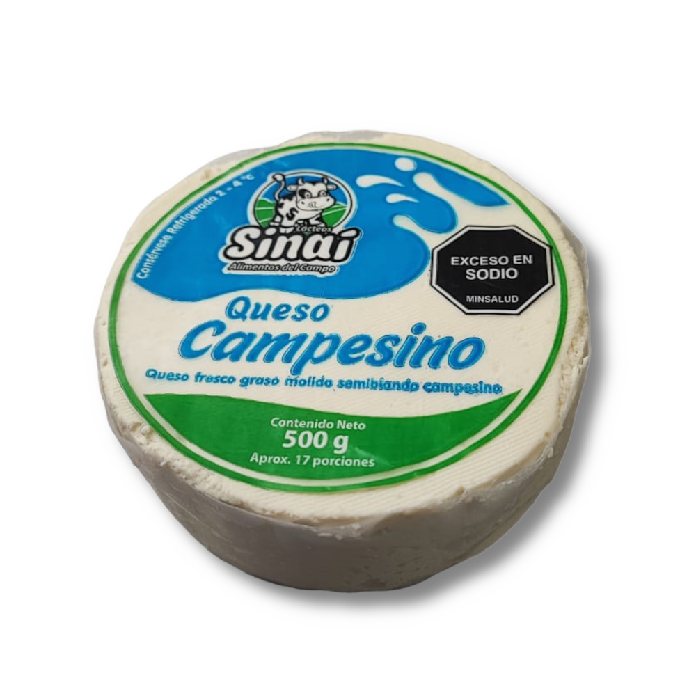 El queso campesino, es un queso fresco graso molido semiblando de sabor suave y textura cremosa, no contiene conservantes, ideal para acompañar todas tus preparaciones. Este producto se encuentra certificado en sodio (resolución 2013 de 2020).